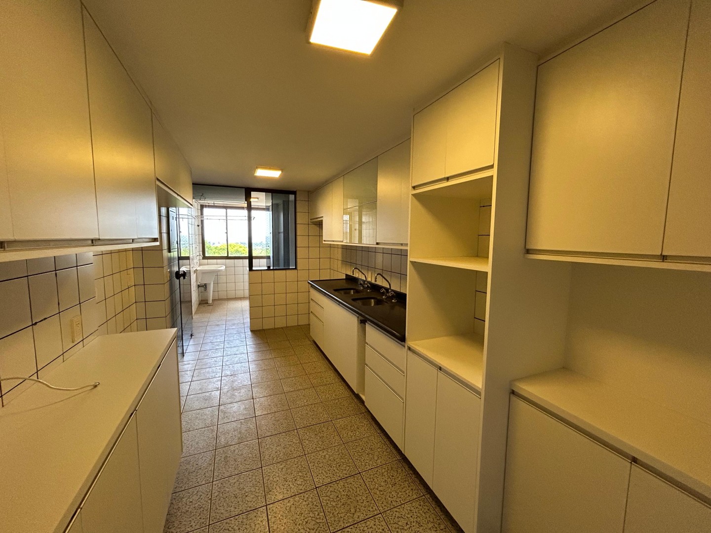 A área de serviço é ventilada e bem organizada.
